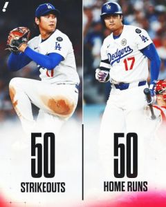 MLB公式から新しい50-50クラブ認定50-50クラブ!大谷翔平はMLB史上初めて、シーズン50本塁打と50奪三振を達成した選手です!