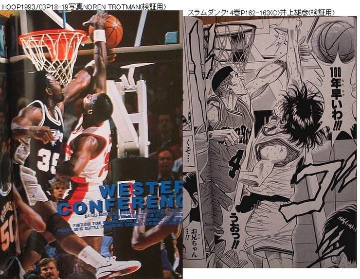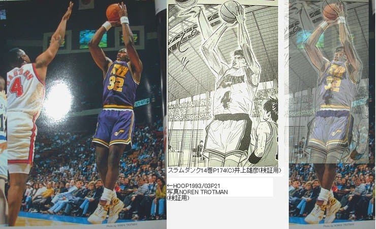 >たとえばバスケットボールの世界を描いた人気漫画『スラムダンク』について、NBA選手の写真のパクリではないかとインターネットで騒ぎになったことがあります。