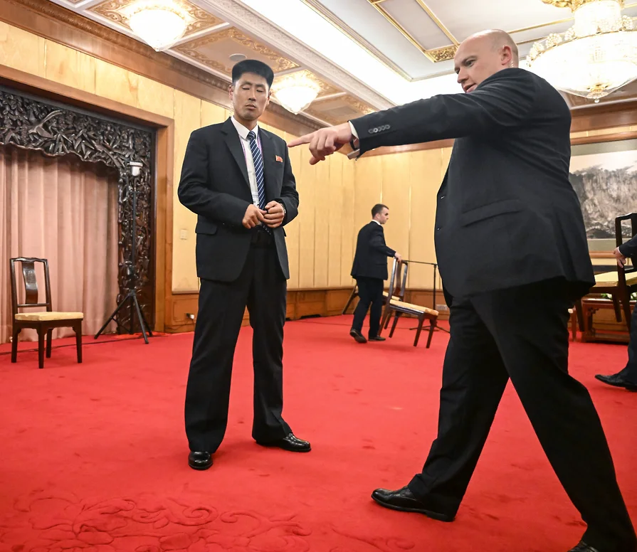 お互いがリモコンのスイッチに掛けた指を剥がし合うという、コメディ映画や漫画のようなやり取りはどうでもいいのですが、北朝鮮のお付きの人の顔。