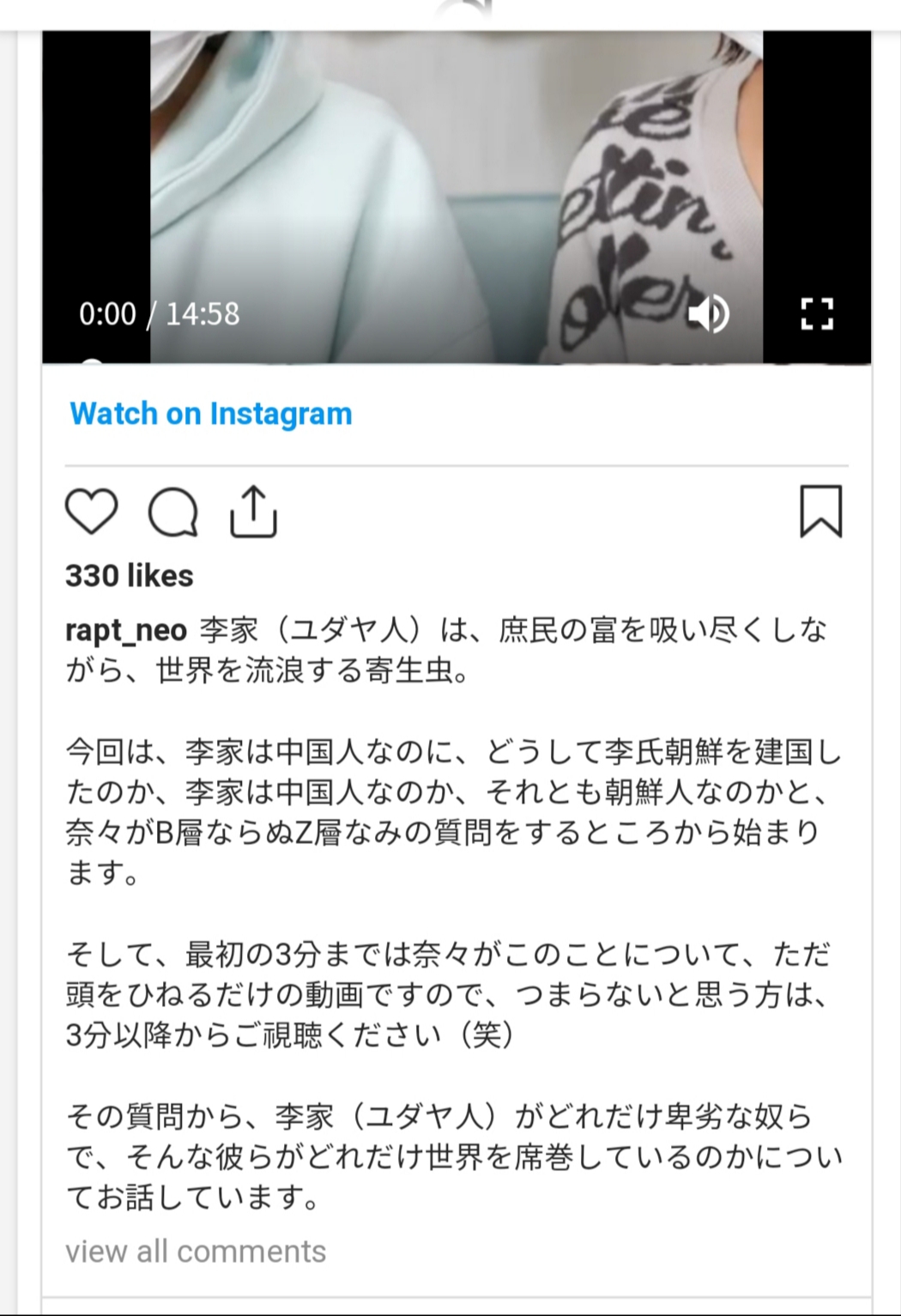 ロレックスを付けていたら左腕が斬られ、美人と手を繋いでいたら右手が斬られ、高級車に乗っていたら後からダンプで引かれる時代にしてはダメです!早く鎮めなさい!