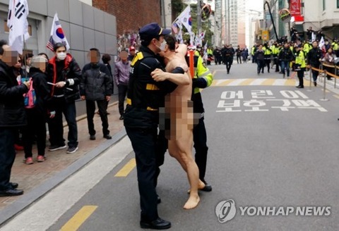 江南(カンナム)警察署によればイ氏はこの日の午後3時20分頃、一糸まとわぬ姿で朴槿恵元大統領の家に向かって走り逮捕された。イ氏は身体障害があり、今月20日にも一糸まとわぬ姿で「私は鄭道令(救世主)だ」と叫びながら駆け回り、検挙されている。