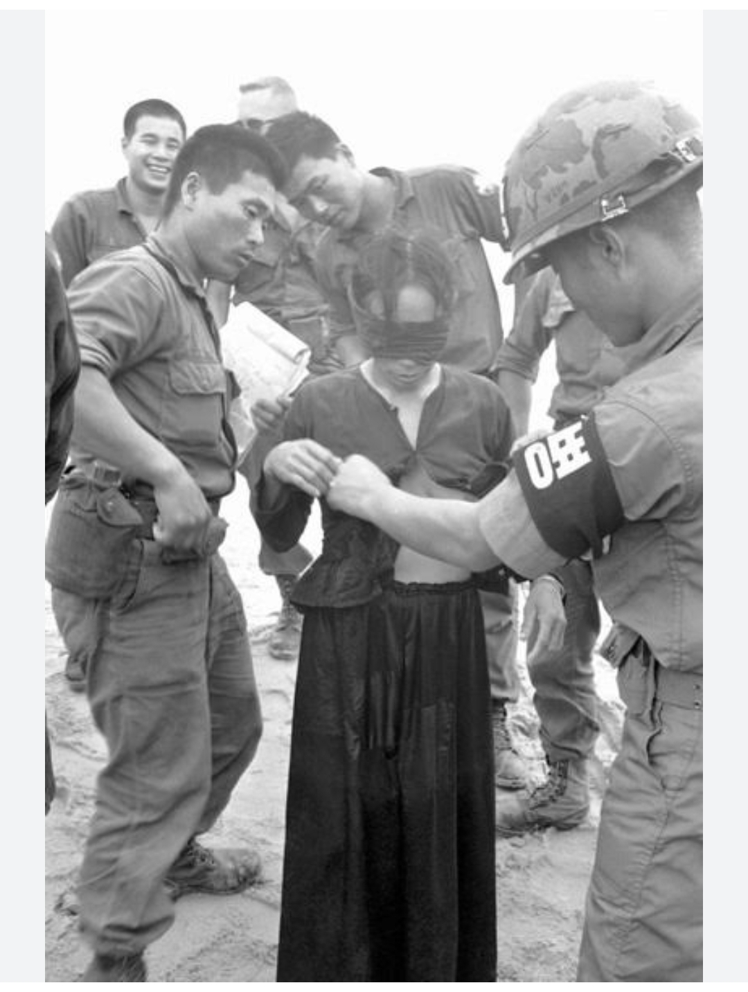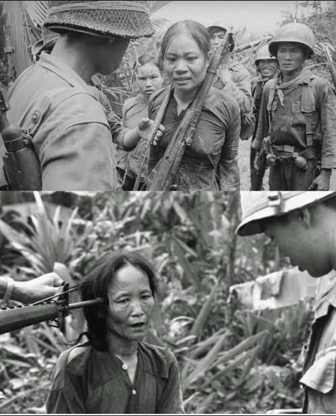 해당사진도 매우 유명한데 베트콩 여성 게릴라를 남베트남군이 잡아서 심문하는 사진
