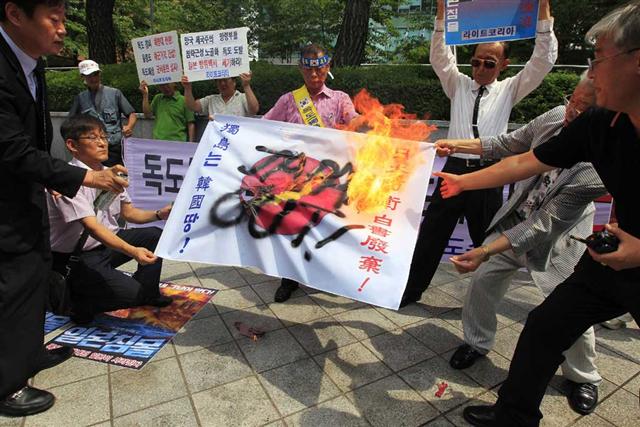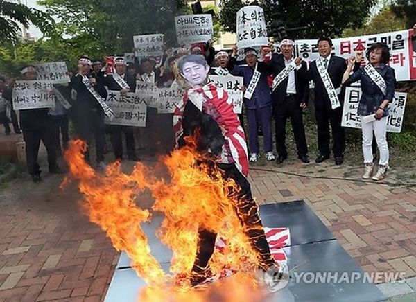 韓国が燃やしたり引き裂いたりしている写真は簡単に見つかる。