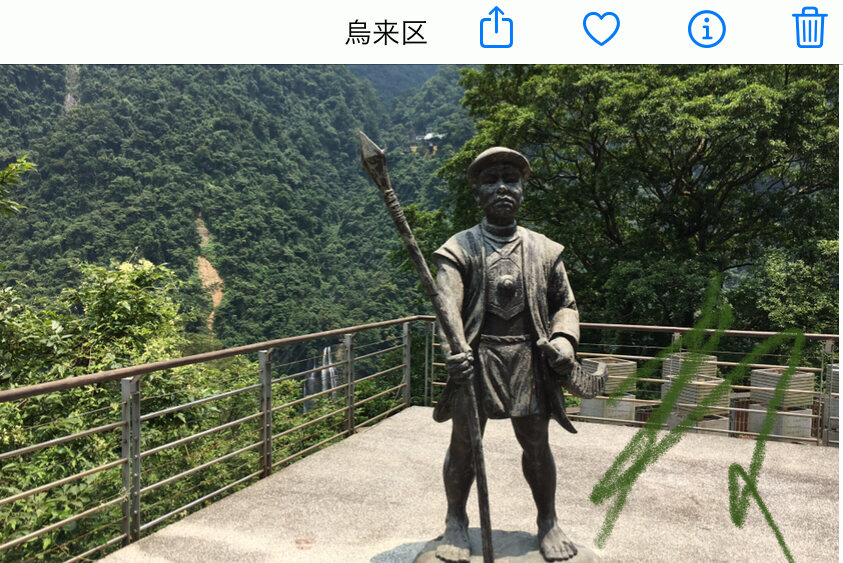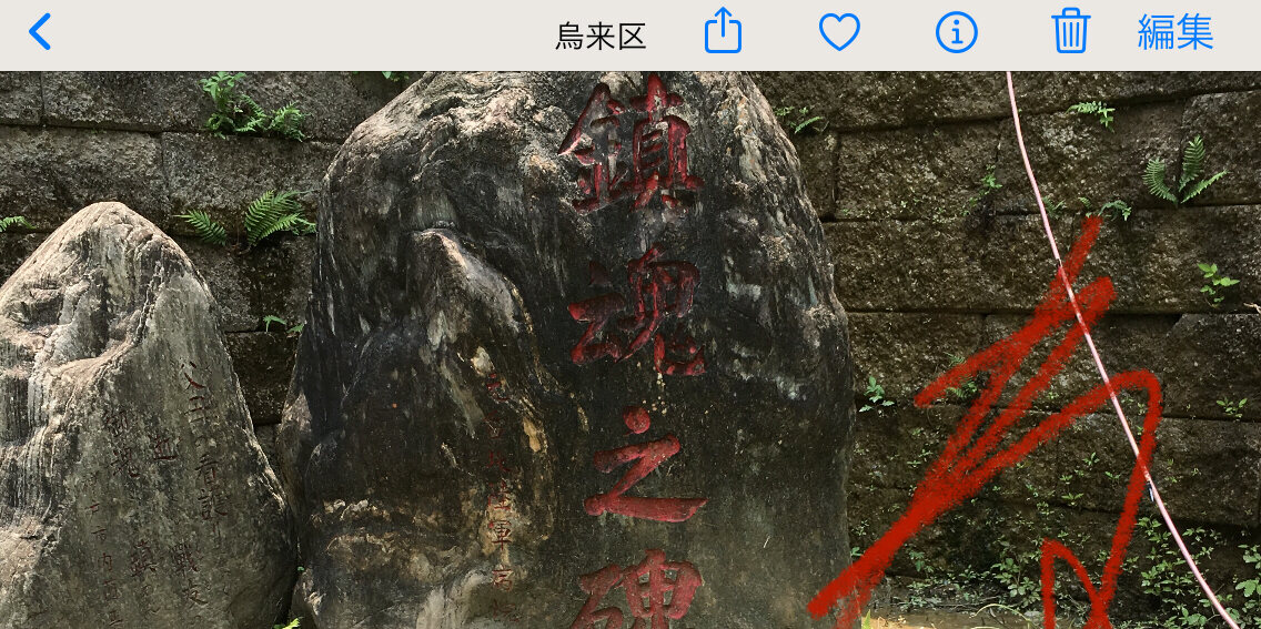 ワイが槍を持った兵隊さんの像を参拝した時は、兵隊さん像の下にある(あった?)李登輝先生の書が刻まれた台座は無かったわ。
