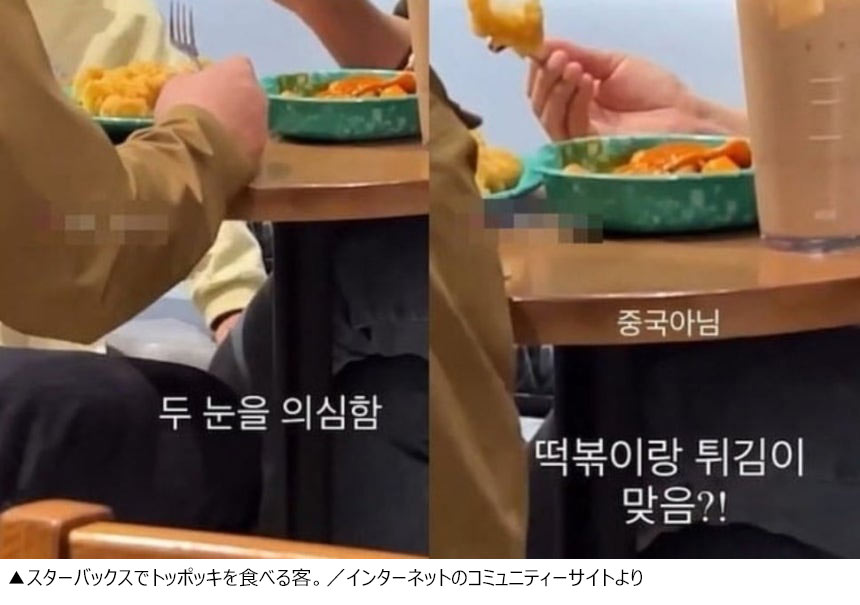 しかし最近、インターネット上ではスターバックス店内でトッポッキ(餅の甘辛炒め)や揚げ物、ケーキなどを食べる客の動画や写真が拡散され、物議を醸していた。