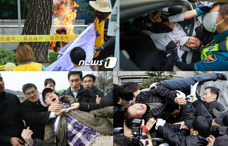 ソウル・少女像前でぶつかる記憶と否定…「水曜集会」と右翼団体が対峙