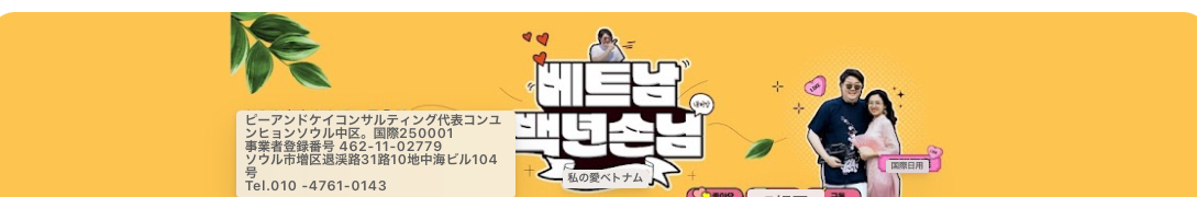 プレミアム教育ベースの国際結婚!プレミアムベトナム国際結婚、百年のお客様です。 P&Kコンサルティング(PnK)百年ゲストYouTubeチャンネルにようこそ。ソウル-中区-国際25-0001事業者登録番号:462-11-02779代表:コン・ユンヒョンソウル中区退渓路31ギル10地中海ビル104号保証保険番号:100-000-202500489962選抜→2ヶ月先教育→1:1単独対戦→3ヶ月追加教育→結婚という**「教育中心国際結婚システム」**を運営します。 ⸻▶5ヶ月500時間プレミアム花嫁教育コース精神教育/礼節教育/文化理解/料理/スタイリング/ヨガ/韓国語集中盤▶教育費中心の透明な料金体系ビザ・書類費を含め、花嫁生活費まで含まれた合理的構成⸻花嫁を「人」として尊重します。結婚は取引ではなく、一緒に生きる準備です。今は「教育が伴う国際結婚」が基本です。あなたは大切です。あなたの百年、私たちのPnKコンサルティングが一緒になります。カウンセラーのカカオトークnabi0712携帯電話010 4761 0143>>19