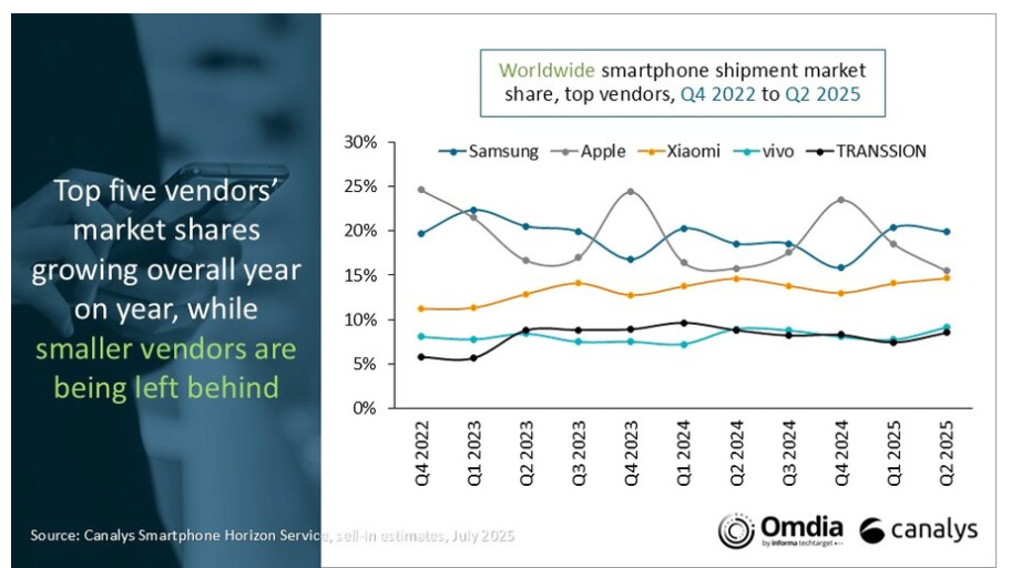また、海外では状況が「さらに深刻」で、特に米国ではアップルとサムスンのスマホシェアの格差が過去最大に拡大したという。