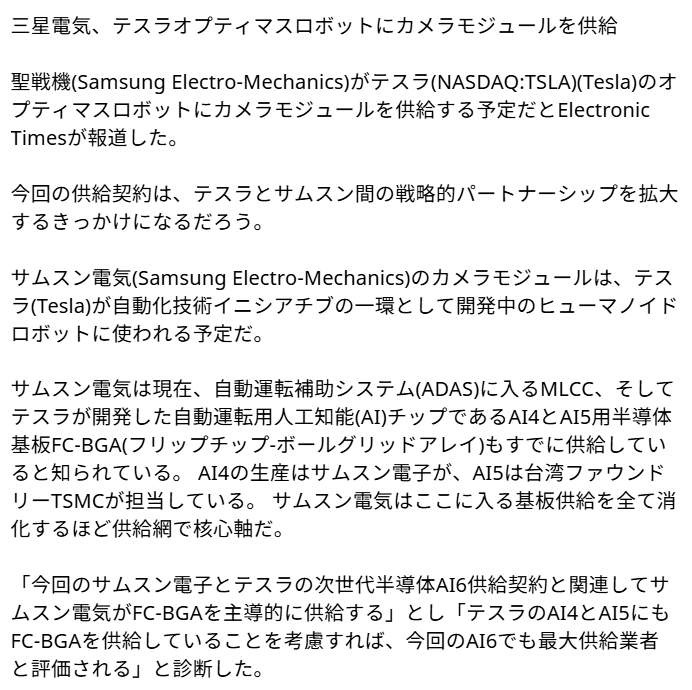 しかしチームを解体したことで、テスラは今後、コンピューティング能力の面ではエヌビディアやAMD、チップ生産の面ではサムスン電子など外部の技術パートナーへの依存度を高める計画とみられる。>>53