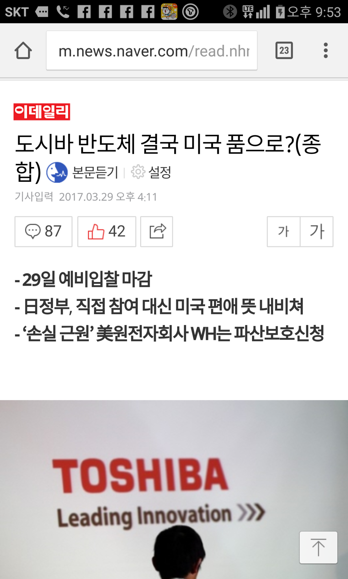 근데 난 도시바가 일본기업으로 남아 있으면
