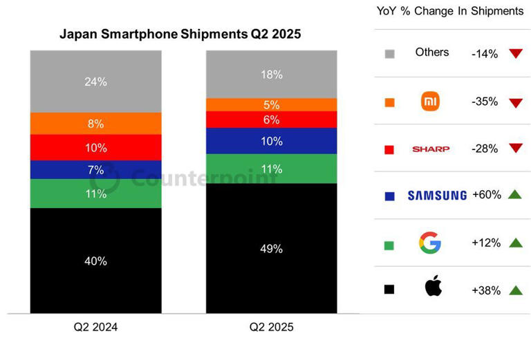 삼성전자 판매량은 전년동월대비 12% 증가한 2,024만대 기록했습니다. 전 지역에서 전년동월대비 판매량이 증가했는데 7월에 출시된 폴드/플립7 신제품 출시 효과와 중저가 세그먼트 내 A 시리즈 점유율이 회복되었기 때문으로 파악됩니다. 갤럭시 S25 시리즈의 6개월 판매량은 2,270만대(기본형 722만대, 플러스 450만대, 울트라 1,098만대)입니다. 갤럭시 S24 시리즈의 6개월 판매량은 2,080만대(기본형 650만대, 플러스 417만대, 울트라 1,013만대)입니다. 5월 말 출시된 S25 Edge 시리즈 판매량은 101만대 입니다. 7월 25일 출시된 Galaxy Z 7 시리즈 판매량은 123만대(Fold 77만대, Flip 33만대, FE 13만대)이며 동기간 Galaxy Z 6 시리즈 판매량은 102만대(Fold 43만대, Flip 59만대)입니다. Fold 모델에 대한 긍정적인 반응이 판매량 증가로 이어지고 있습니다.Appleの販売台数は前年同月比7%増、前月比7%減の1,539万台を記録しました。 中国以外のすべての地域で前年同月比販売量が増加しました。 6·18ショッピングフェスティバル期間中、攻撃的なプロモーション以降、中国内の販売台数は減少し、新製品の発売前まで中国の需要は低調になると予想されます。 iPhone 16eの6ヶ月累積販売台数は871万台を記録しました。 16シリーズの発売後、11ヶ月の累積販売台数は1億3,731万台で、15シリーズの同期間の販売台数を2%下回っています。 ProMaxとProの合算比重は61%で、ProMax比重は32%でProより高く維持しています。