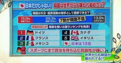 嘘つきで約束も守らず反日してくる朝鮮人に好感を抱くわけがない韓国の国家詐欺がどんどんバレてるからな。