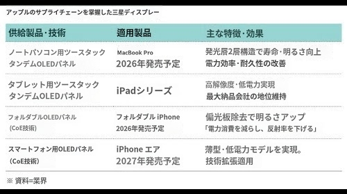 초슬림 아이폰의 디스플레이 공급 역시 국내 업체가 전담한다. 아이폰 17 에어에는 삼성디스플레이와 LG디스플레이의 저온다결정산화물(LTPO) 유기발광다이오드(OLED)가 탑재된다. LTPO OLED는 소비 전력이 낮은 고사양 OLED로, 제조 난이도가 높아 중국 업체는 애플 공급망에 진입하지 못하고 있다.