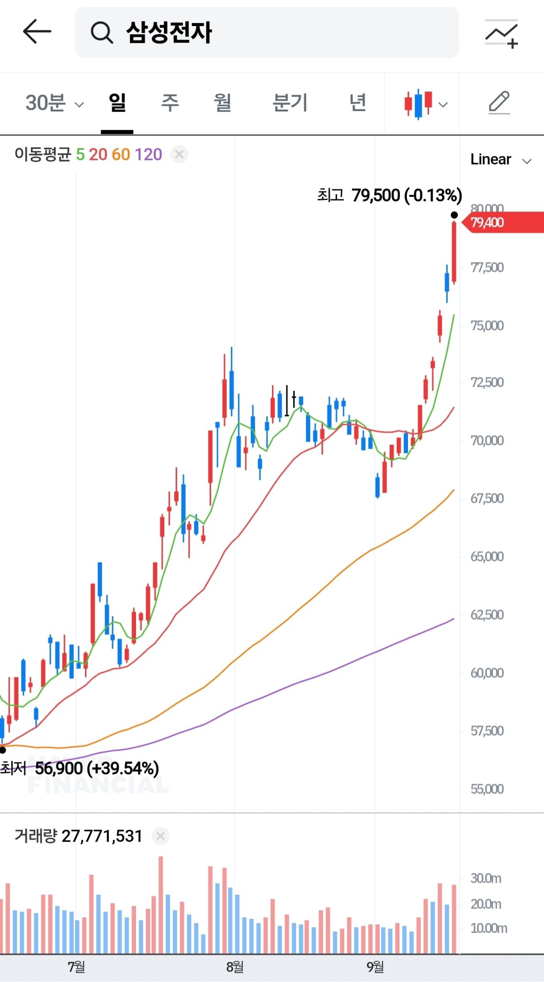 현재 삼성전자 주가 7만 9400원