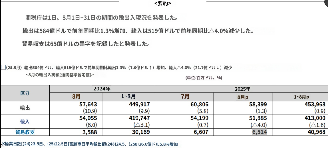 (속보) 7월 수출액 한국이 일본 추월