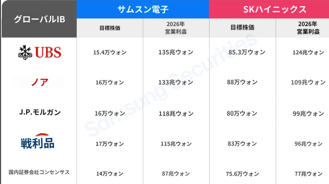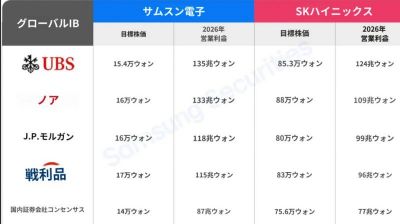 2026年(E)の売上高は489.6兆ウォン、営業利益155.0兆ウォン、純利益112.2兆ウォンで実績がクォンタムジャンプすると見込まれ、PER 7.3倍、PBR 1.5倍に下がる。