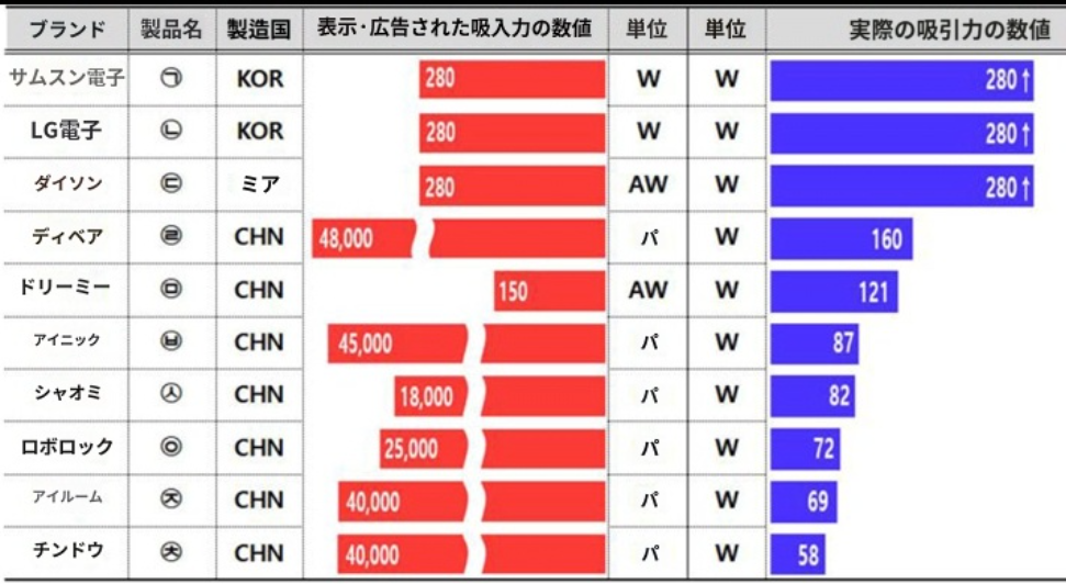 로보락·샤오미·아이닉·아이룸·디베아·틴도우 등 중국산 제품 6종이 최대 흡입력 단위로 진공도 단위인 파스칼(Pa)을 사용해 국제표준(IEC) 흡입력 단위인 와트(W)를 쓰는 삼성전자·LG전자 제품보다 성능이 뛰어난 것처럼 광고했다고 18일 밝혔다.