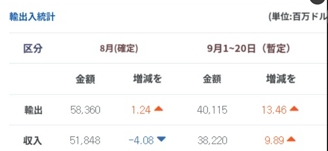 😇😇😇한국의 2025년 9월 20일까지의 잠정 수출액은 401억 달러로 전년 같은 기간 대비 12.7% 증가, 전월 같은 기간 대비 12.9% 증가하였습니다.