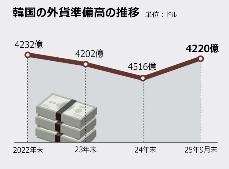 韓国による年間最大200億ドルの対米投資は、トランプ米大統領が当初要求した「3500億ドル前払い」よりは条件が緩和された。しかし、200億ドルでも9月末現在の韓国の外貨準備高(4220億ドル)の4.7%に達する金額だ。韓国政府は外国為替市場への衝撃を最小化すると説明したが、少なくとも10年間にわたってこれほどの資金を米国に注ぎ込むことがどれほど現実性を帯びるかについて懸念する声も聞かれる。