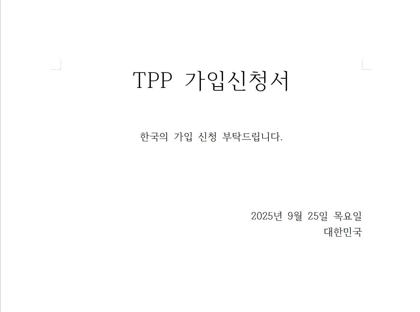 それが「日本への敗北を示すものなので受け入れ難いnida」というのは南朝鮮の国内問題で、日本を始めとする現加盟国は全く無関係なので、自称世界最優秀民族の矜持にかけて自力で解決してください。そもそも農業や自動車産業の反対があって国内の合意を取り付けてないんだから、申請も何も無いと思うがw