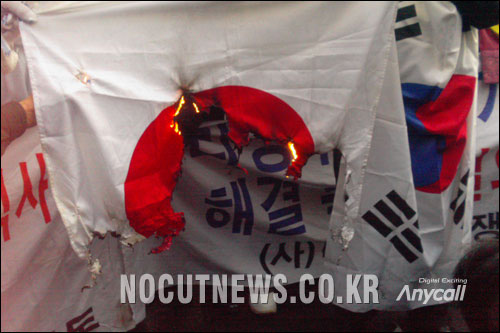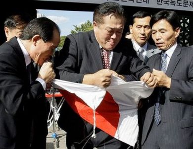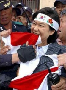 日章旗に噛み付いて発狂するのは朝鮮女もやってたのかwww中韓友好万歳🙌