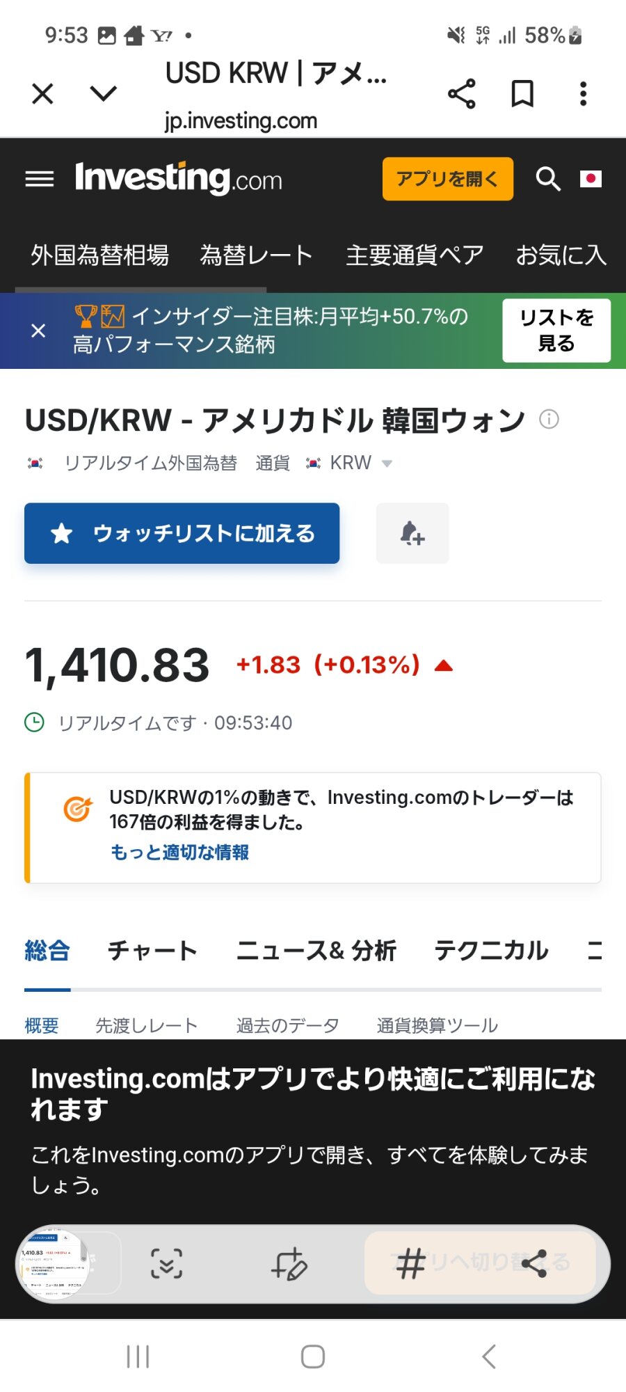 で、ただいまウォンは絶賛1410ウォン突破中🤣🤣🤣>>21