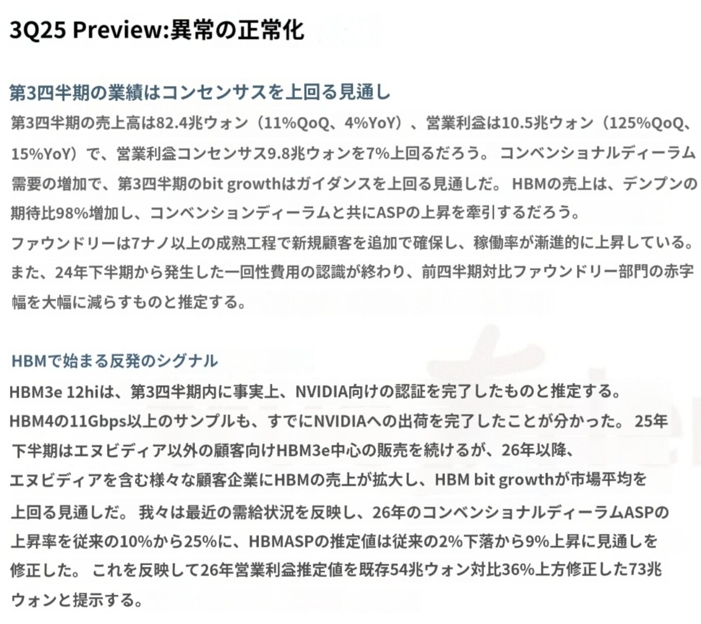 AI 서버를 중심으로 HBM, DDR5 등 고부가가치 메모리 제품 수요가 강했고, 메모리 고정가격도 양호한 흐름을 지속했다.