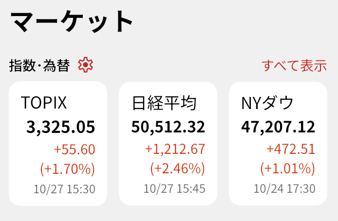 先進国の株式市場はほぼ上がってるのにね🤭【速報】日経平均株価が5.1万円台に 一時1000円超の値上がり