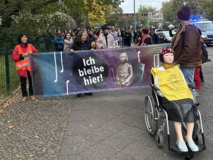 ドイツの少女像存続求め抗議行動 撤去期限迎え韓国系団体