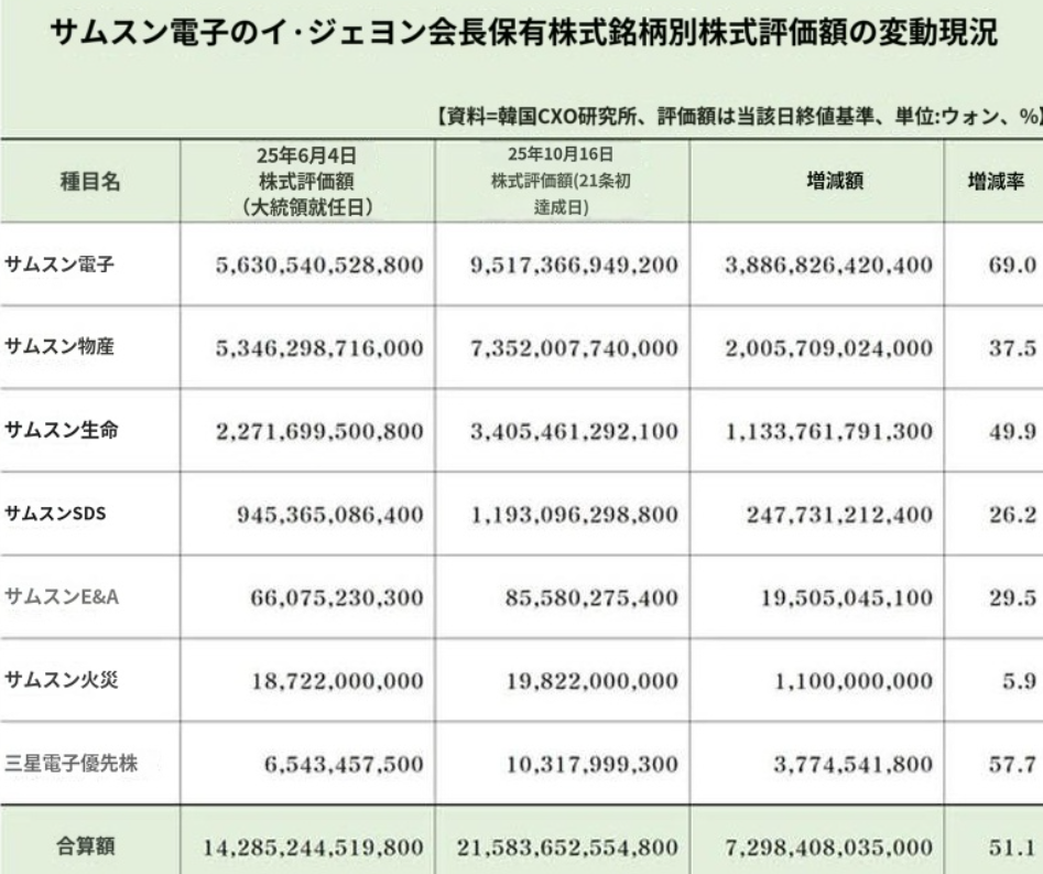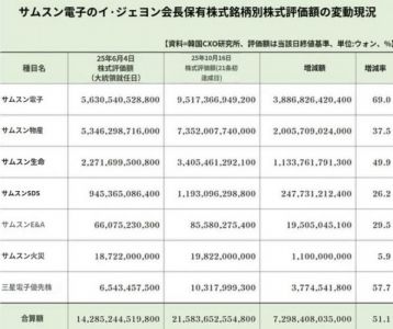 国会企画財政委員会所属のチョ・スンレ議員(共に民主党)が国税庁から提出を受けた「2024年帰属の譲渡所得および金融所得」資料によると、2024年の株式譲渡所得総額24兆4858億ウォンのうち、上位0.1%(210人)が13兆4059億ウォン(全体の54.7%)を得ていた。1人当たりの平均譲渡所得は638億ウォンに達した。