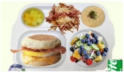 公開された写真の中の食品トレーには、ご飯と若い白菜ともやしのスープ、わかめの茎炒め、カタクチイワシ炒め、そしてキムチが盛られていた。