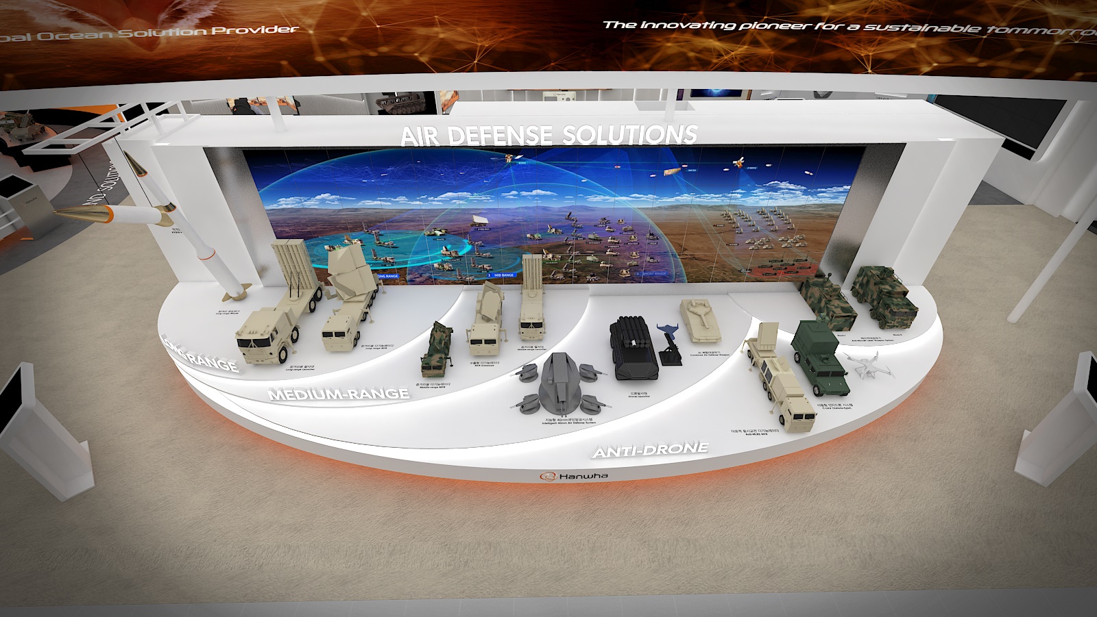 AI 기반 지능형 통합 방공체계도 공개했다. 위협 수준에 따라 자동으로 우선순위를 판단해 대응하는 이 체계는 전(全) 고도의 공중 위협을 무력화할 수 있는 것이 특징이다. 이 시스템의 핵심 센서인 다기능 레이더(MFR) 역시 함께 전시됐다. ‘천궁-II’ 중거리용, ‘L-SAM’ 장거리용, ‘LAMD’ 장사정포 요격체계용 등 다양한 전장 구성에 최적화된 버전이 공개됐다.