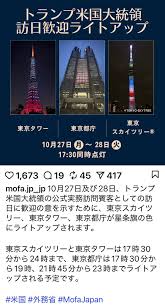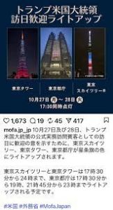 高市首相はX(旧ツイッター)で、「明日会えるのを楽しみにしています」と英語で投稿し、トランプ大統領の来日を歓迎した。投稿では、星条旗色にライトアップされた東京タワー、東京都庁、東京スカイツリーの写真も添えた。