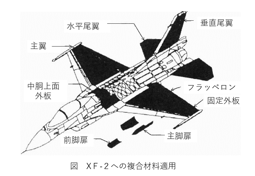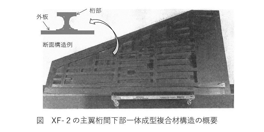 この中の一体成形を航空機の機体に取り入れた一つの例として、航空自衛隊のF-2戦闘機がありますが(開発段階ではXF-2と呼んでいました)、炭素繊維強化複合材による一体構造の主翼を世界で初めて採用しているのです。>>15