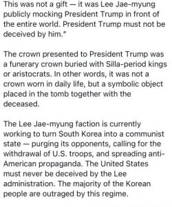 これは贈り物ではなかった — イ・ジェミョンが全世界の前でトランプ大統領を公然と嘲笑したものだ。トランプ大統領は彼に騙されてはいけない。