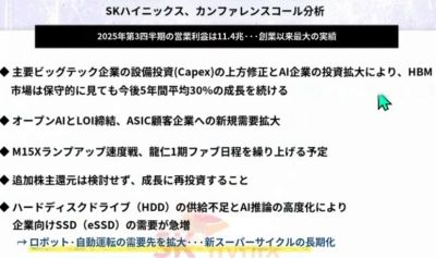 AIブームを率いるフアンCEOが韓国を訪れるのは15年ぶりで、今回の訪韓を契機にサプライズ発表がありえるとの見方が出ている。サムスン電子は第6世代広帯域メモリー(HBM)製品であるHBM4の量産体制を構築しエヌビディアの品質検証テスト通過を待っている。サムスン電子は第5世代製品HBM3E12層のエヌビディア納品にも努めてきたためサムスン会長の李在鎔(イ・ジェヨン)とフアンCEOの会合で具体化された協力発表が出るだろうとの見通しがある。現代自動車グループは今年初めにエヌビディアとモビリティ革新に向けた戦略的パートナーシップを締結している。