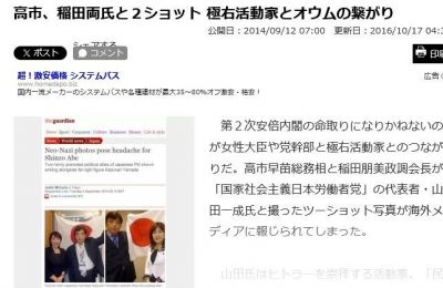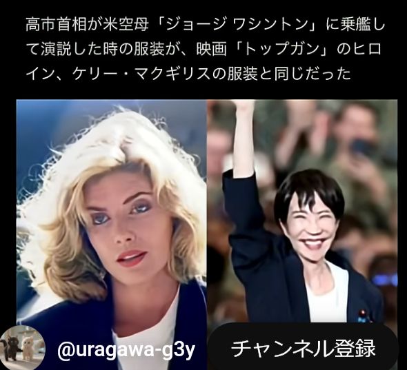 高市氏をめぐっては、28日に神奈川県横須賀市の米軍横須賀基地に停泊している米原子力空母「ジョージ・ワシントン」上で行われたトランプ米大統領の演説に「飛び入り参加」した際、トランプ氏の横で拳を上げて笑顔を見せたり、トランプ氏から肩を引き寄せられる場面もあり、賛否を呼んでいる。また、首脳会談に臨む際にトランプ米大統領と腕を組んで歩くなどエスコートされた姿も物議をかもしている。