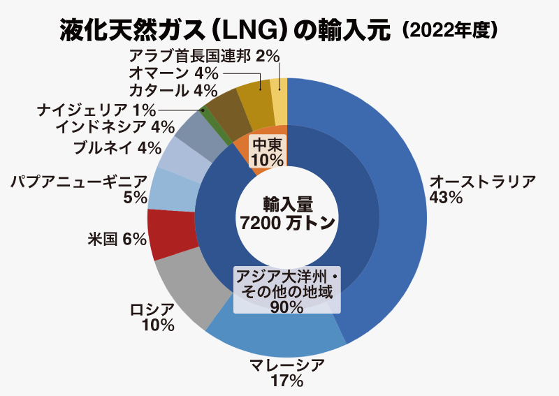 日本は主に液化天然ガス(LNG)を、オーストラリア、マレーシア、米国などから輸入しています。特にオーストラリアからの輸入が多く、これは長年の主要な輸入相手国です。最近では、米国からの輸入量が順位を上げ、調達先の多様化を図っています。【速報】日本はロ産LNGから脱却すると米長官