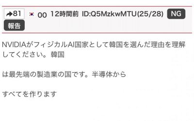 中国や北朝鮮やロシアと同じセンシティブ指定国家にNVIDIAのGPUをトランプ大統領が輸出許可するのだろうか?😂😂😂ジェンスン・フアン氏、韓国にGPU26万枚を約束した本当の理由