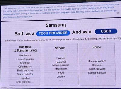この日、オ団長は「サムスンは非常に多くの技術を保有しているテクニカルプロバイダ(供給者)であると同時に、それ自体が非常に大きなロボットコンシューマー(消費者)」として「多くの企業があるが、プロバイダとユーザーが一体であるところはロボット会社はサムスンだけ」と話した。