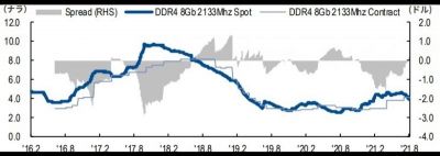 원래 메모리 반도체는 현물처럼 시장에서 거래되는 현물가격(Spot Price)이 대형 고객사들 대상으로 월/분기 단위로 계약되는 계약가격(Contract Price)보다 좀 더 높은 편임. 이걸 Spot Premium이라고 표현함. 그런데 지난 슈퍼사이클 때 Spot Premium은 잘해야 50% 수준이었음. 그런데 지금은 DDR5만 해도 거의 200%에 육박함.