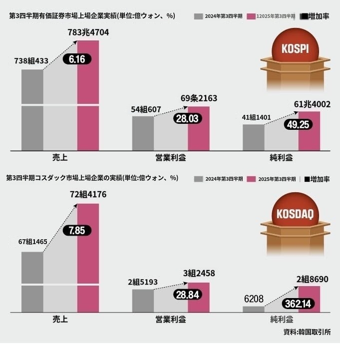 これら企業の第3四半期の売上高は831兆1613億ウォンで、前年同期(785兆8194億ウォン)比45兆3419億ウォン(5.8%)増えた。