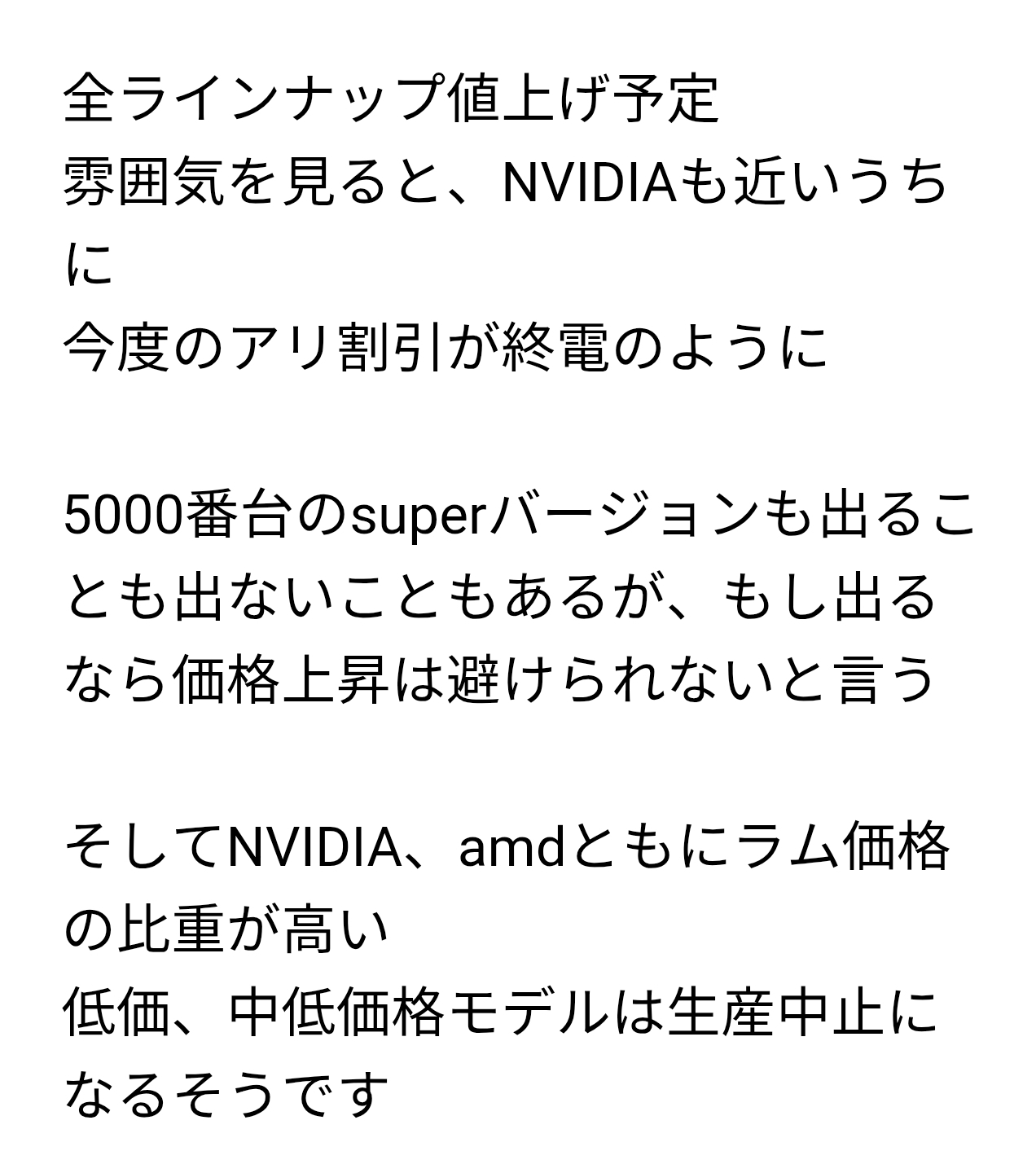 生産ラインの混乱:これにNVIDIA発のLPDDR需要まで重なり、メーカーは既存のモバイル/PC用ラインをサーバー用に回すべきか悩まなければならない状況です。 これは結果的にスマートフォン、パソコン、自動車用メモリーの価格までドミノのように引き上げることができます。