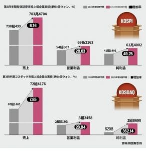コスピ上場企業の第3四半期の営業が