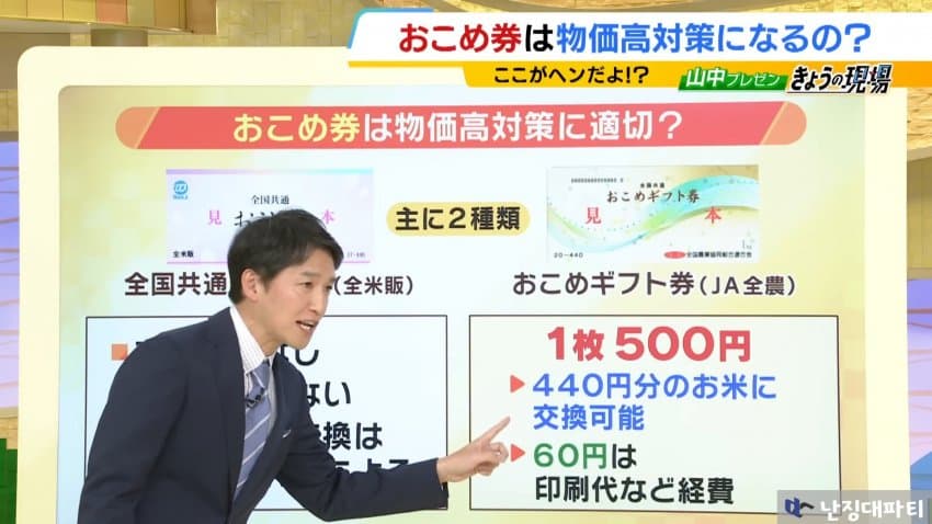 イルボン政府はチヨッパリ国民におこめ券配るニカ