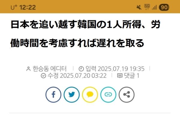 つい最近、韓国側が労働時間で割ったら日本の方が韓国より一人当たりGDPも裕福と言うデータを出しているw>>14