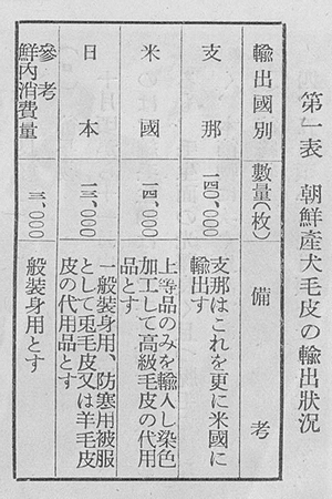 1939年、日本は犬皮の配給統制に関する法令を発表する。翌年は原皮需給を独占する朝鮮原皮販売株式会社を設立し、この会社を通じてだけ犬皮が流通するようにした。犬皮収集が国策になったのでむやみに売買してはならないと釘をさした。このような固有犬撲滅作戦は世界史にも例がない。