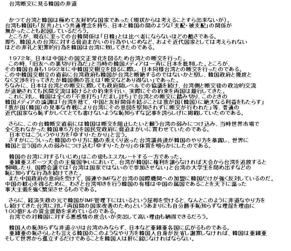 韓国人が日本のメディアを信用するのか習近平指導部は鄭氏政権時代の台湾、清朝統治時代の台湾、中華民国政府による台湾接収などを根拠に台湾の領有権を主張しているみたいです。