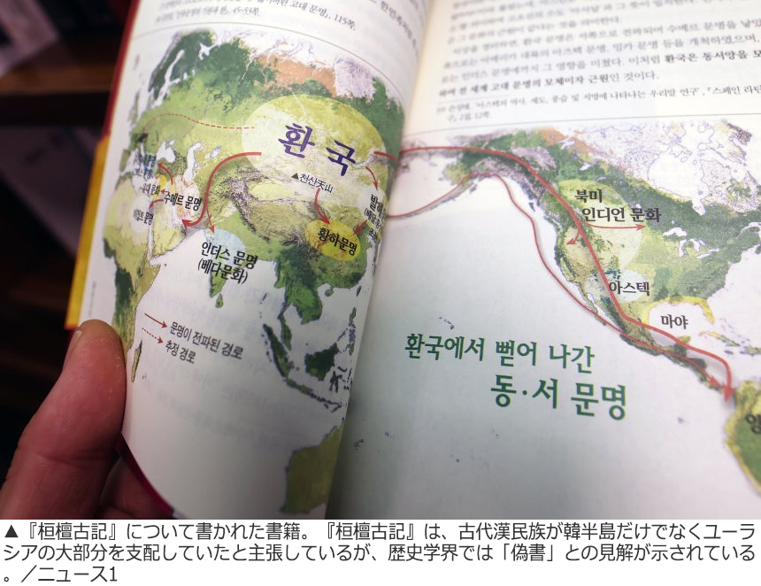 「エセ歴史学の教本」「クッポン(過激な愛国主義)の最高頂点」と呼ばれる『桓檀古記』は、その内容が正しいとするならば、世界の文明史を韓民族中心に書き直さなければならないほどの本だ。1911年に大倧教の教徒、桂延寿(ケ・ヨンス)が古書4種を筆写して編さんしたとされ、1979年に太白教の教祖である李裕岦(イ・ユリプ)が影印本(写真印刷によって複製した本)を公開したことで世に知られるようになった。