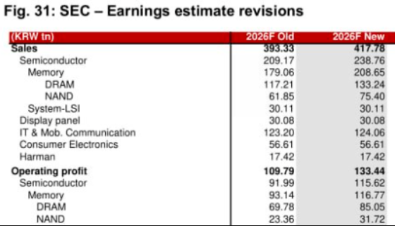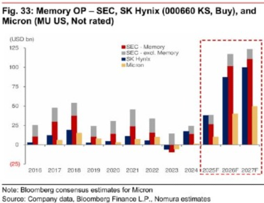 노무라 증권에 의하면 삼성전자의 2026년 낸드 영업이익 32조원 2027년 낸드 영업이이 37조원 전망 입니다